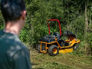 Please note the following in regards to the batteries. Maintenance-free wet and gel batteries are used in ride-on mowers today. Maintenance-free means that no acid or water needs to be refilled. It does not mean, however, that the battery does not need to be regularly charged when not in use and thus maintained. Once a battery is deeply discharged, it will suffer permanent damage. Therefore, if there is a risk of frost during storage, it is recommended that the battery be removed and stored in a dry place at 15 to 18° Celsius. The same applies to Li-Ion batteries. The batteries of ride-on mowers should also be charged at least once a month. So-called continuous maintenance chargers with intelligent electronics are particularly helpful for this. These are already available for around 20 euros in car accessory shops. Li-Ion batteries should be stored with a charge level of about 50 percent. In principle, batteries must be stored in a fireproof place, e.g. in a steel cabinet or metal box. Damaged Li-Ion batteries in particular pose an increased fire risk.