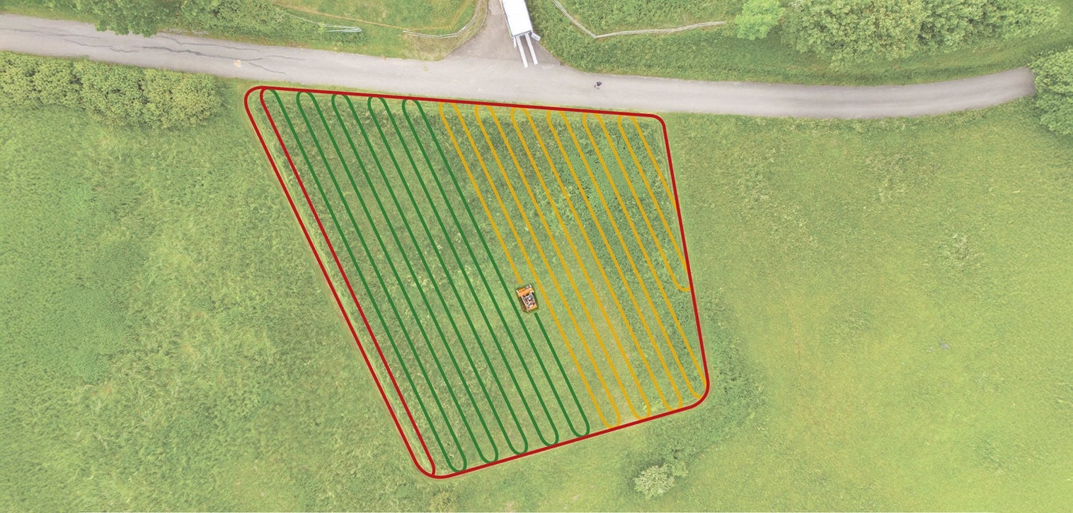 X-ACT Track integrates proven agricultural automation technology from TOPCON, translating it into the world of steep-slope mowing. Operators can choose between A–B line repetition, curved line repetition, or fully automatic pattern mowing, depending on terrain and task. Each mode maintains centimetre-level precision, maximising both productivity and surface quality.